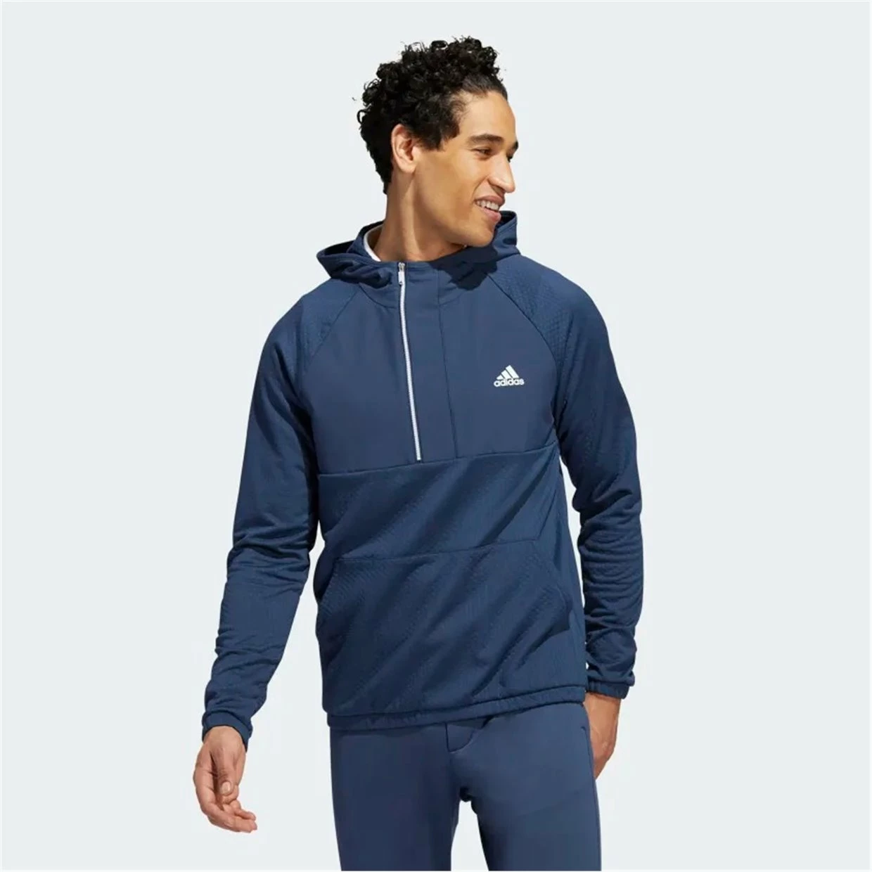 The Adidas Fleece Anorak 1/4 Zip features a regular fit, half zip with hood, overlay on front body and hood, kangaroo pocket, raglan sleeves, and elastic cuffs and hem for supreme comfort and style.