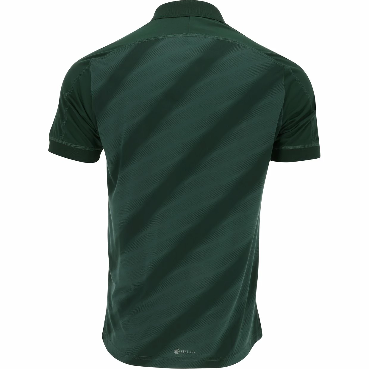 Relax and drive it straight. This adidas golf polo shirt hides your sweat so you can focus on your game. The soft knit build is made for everyday rounds, with raglan sleeves for swing mobility.