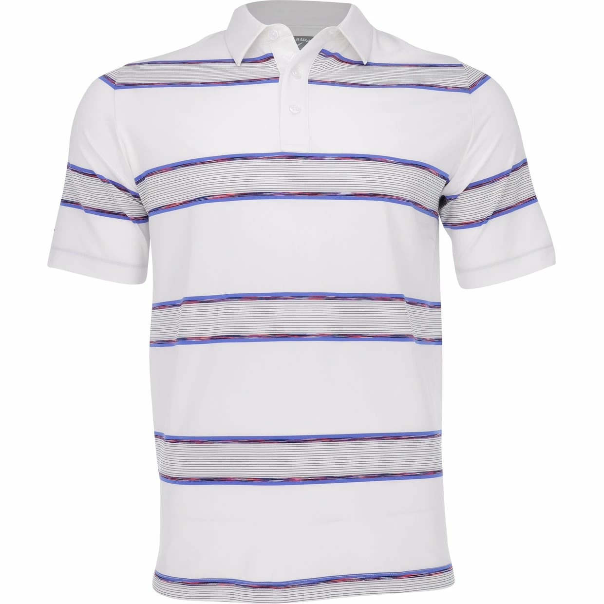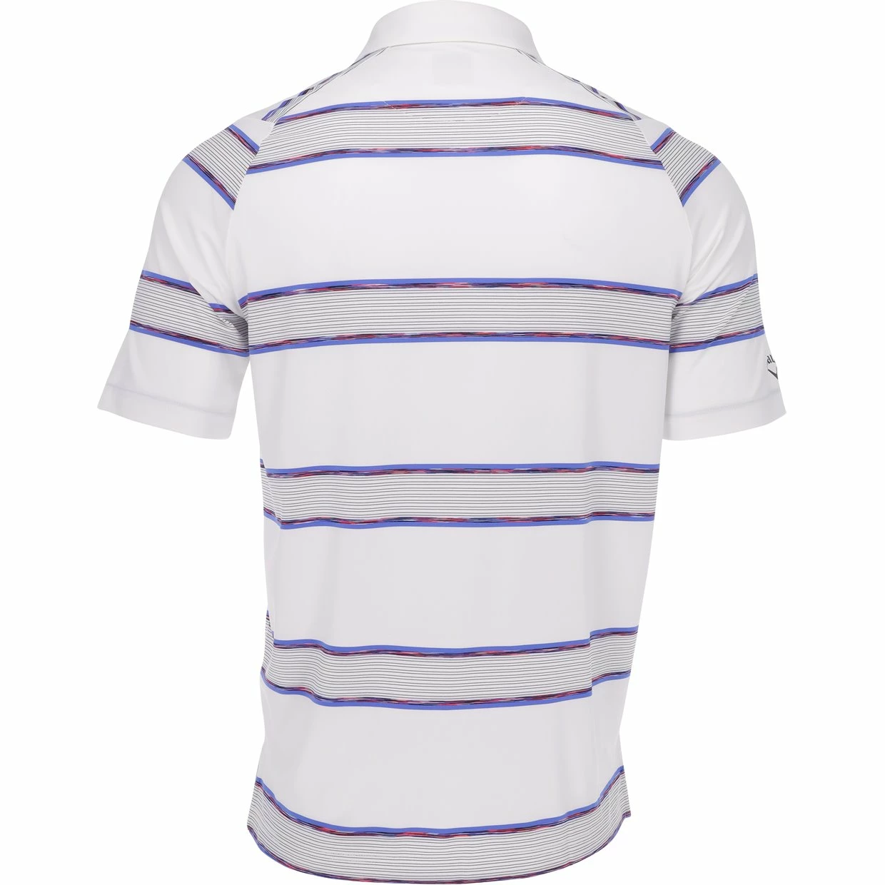 The Callaway Yarn-Dyed Space Dye Filtered Stripe Polo features SwingTech technology, a tour logo heat seal on the right sleeve, embroidered chevron on inside placket, and Opti-Dri technology to keep you comfortable, mobile, and stylish… on and off the golf course!