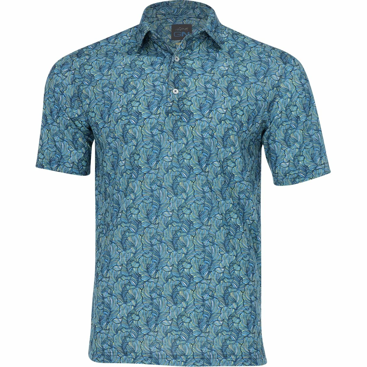 PlayDry is a leading moisture management system that wicks perspiration away from the skin and transports it to the garment’s outer layer so it can evaporate into the air. You stay cool, dry and comfortable. Play Dry, Play Better.This polo features a button down collar, Tropical leaf print, and GN Collection logo on sleeve
