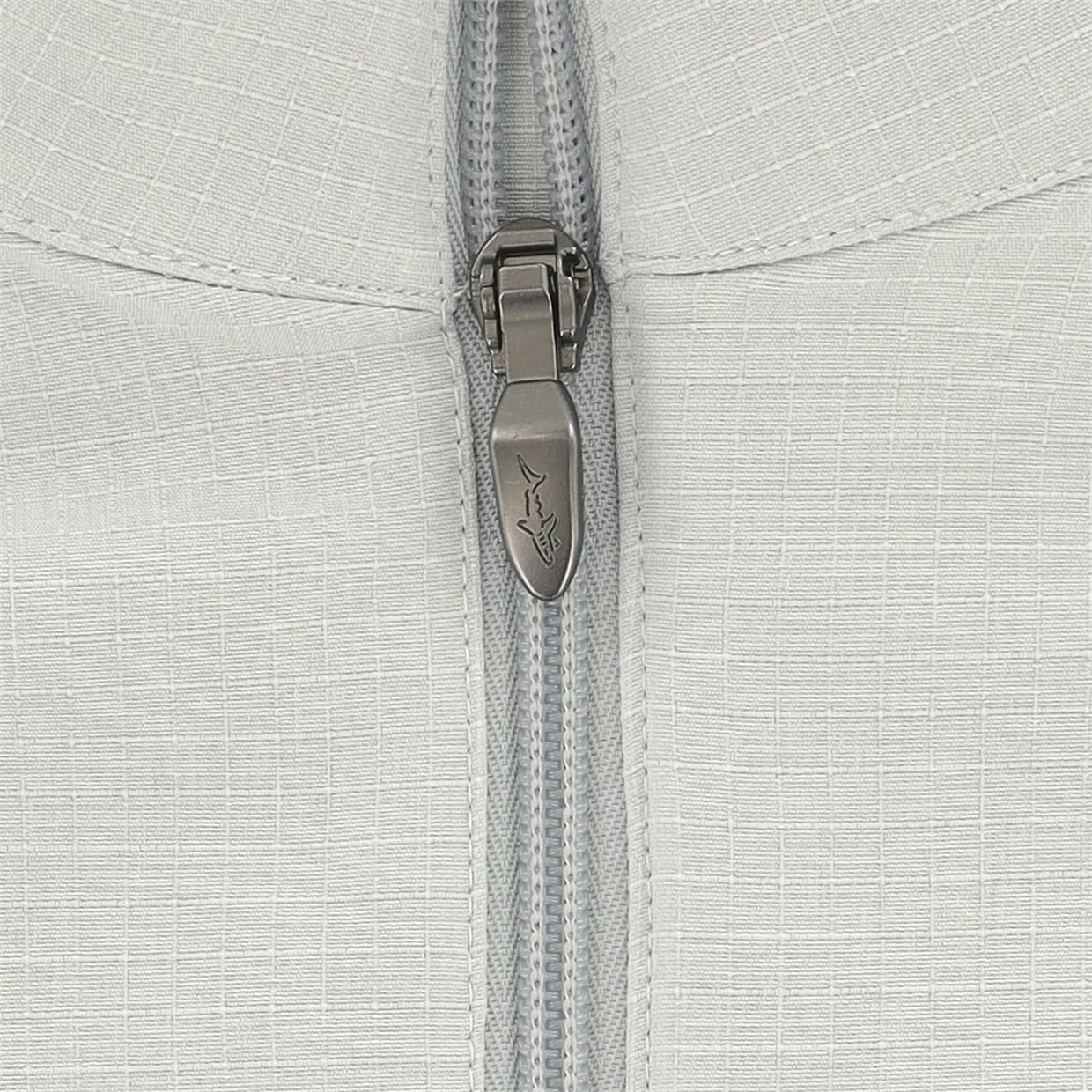 - Silver shark logo on center back neck